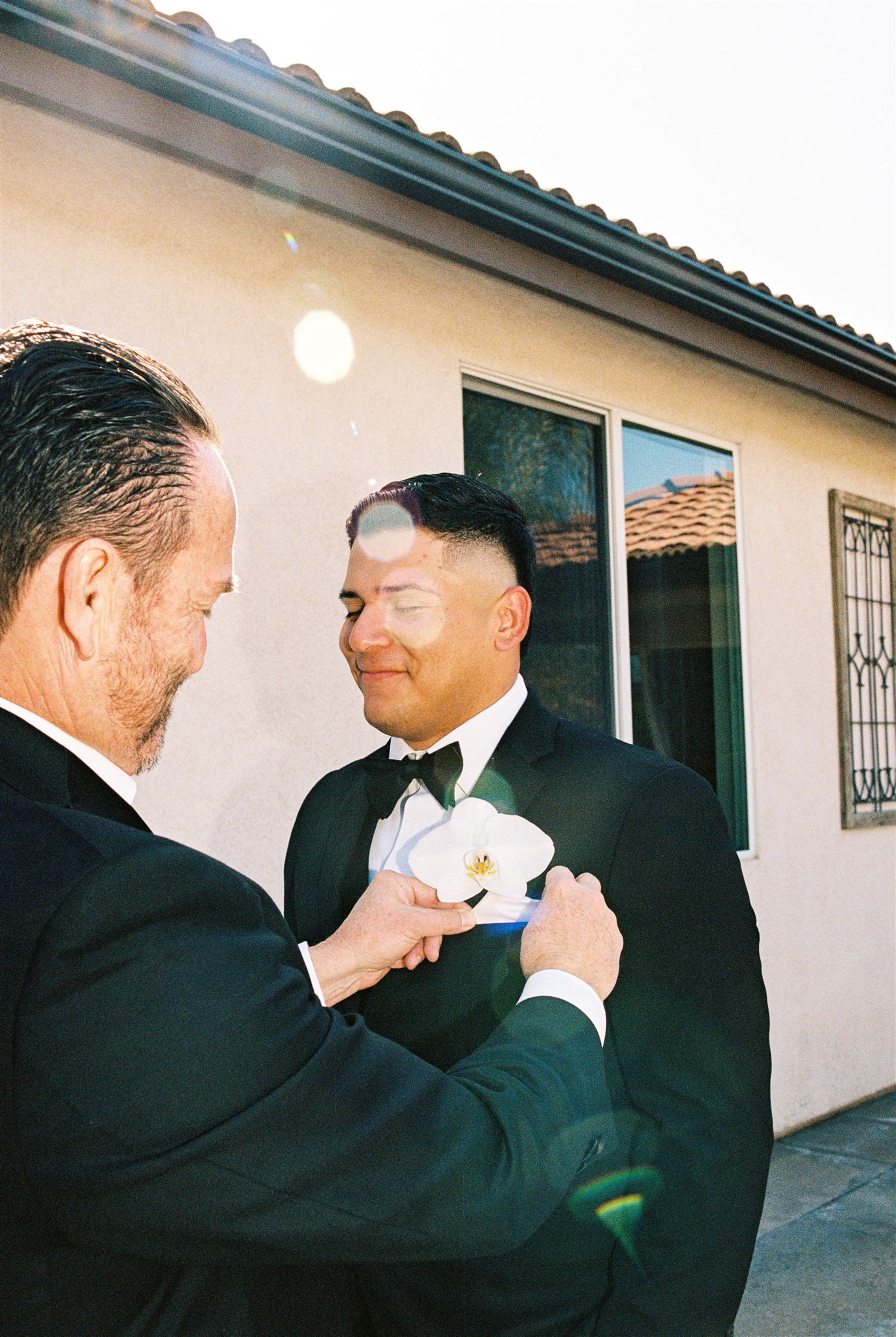 Refined boutonniere crafted with a single white orchid.