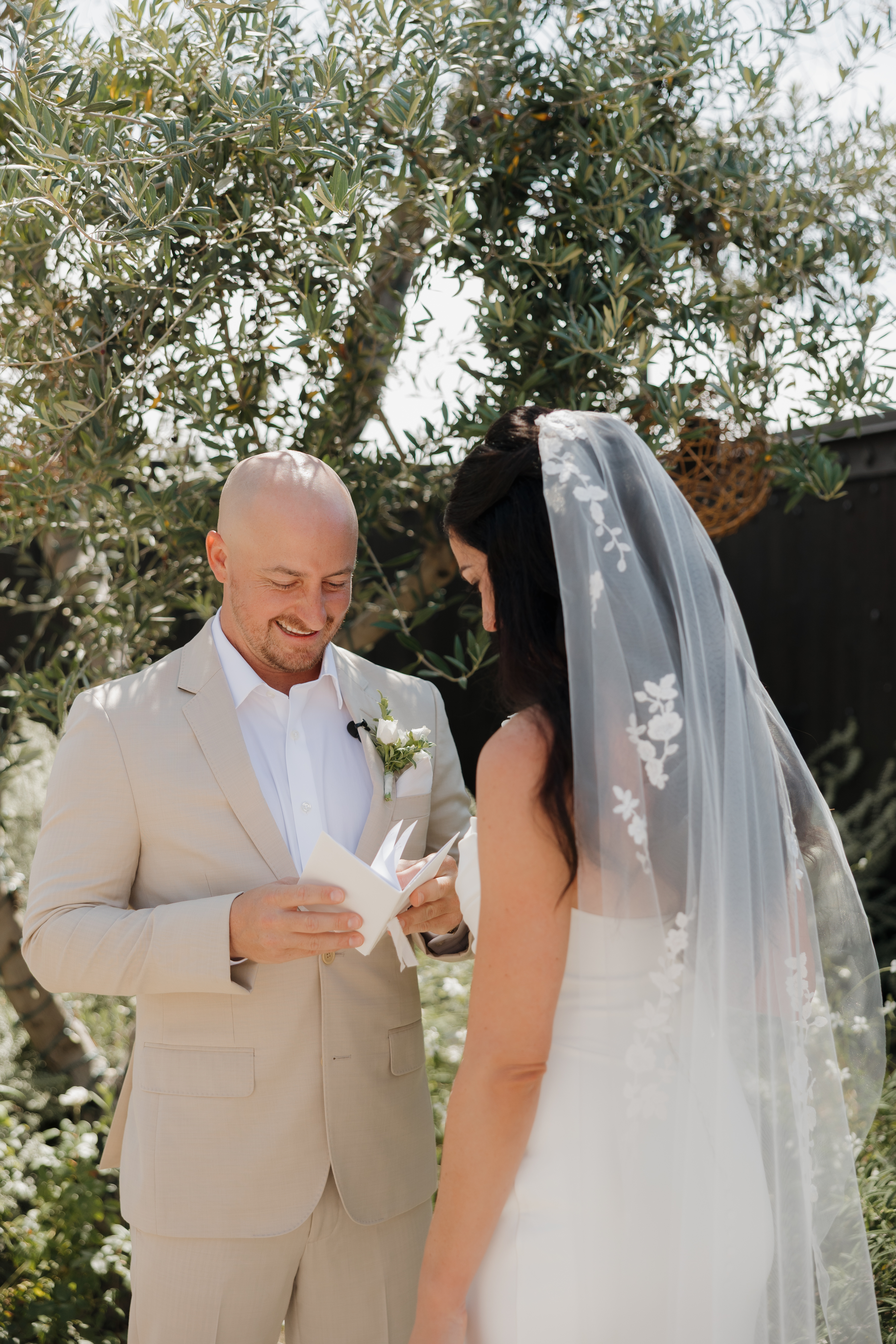 A clean, classic boutonniere crafted with a white bloom and delicate textural greenery. The perfect subtle accent for the groom or wedding party.