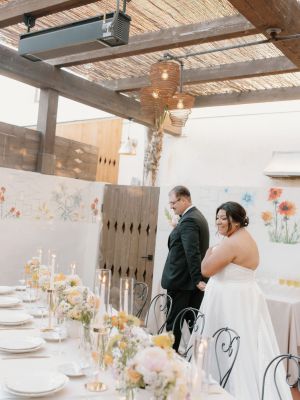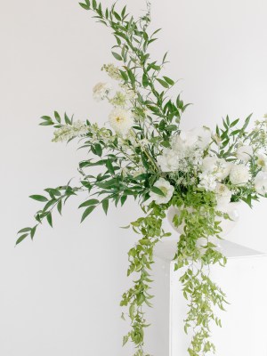 Plentiful bud vase trio featuring pastel blooms placed with intention and space.