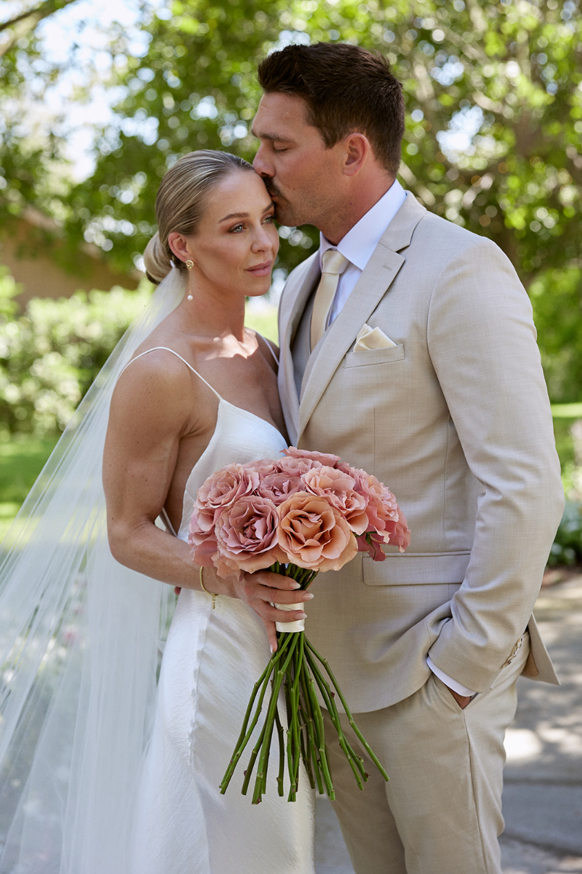 A classic long-stem, hand-tied bouquet in a harmonious spherical shape. Simply designed with Quicksand Roses for true elegance.